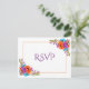 Cartão Postal De Convite Casamento de Aquarela Floral Laranja Roxo RSVP