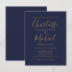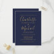 Cartão Postal De Convite Casamento de Azul Marinho e Dourado com Letra de A