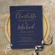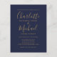 Com nomes em estilo de assinatura, este convite de casamento azul marinho e dourado pode ser personalizado com suas informações em letras elegantes. Criado por Thisisnotme©