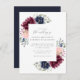 Cartão Postal De Convite Casamento de Cantos Florais de Borgonha e Marinho