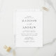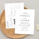 Cartaz minimalista e moderno de convite para casamento, com os detalhes do seu casamento em letras brancas, com destaque para o roteiro de caligrafia em um fundo branco e preto. Personalize a parte traseira do cartão postal do convite de casamento chic com seu endereço de devolução, data de resposta desejada, site de casamento e instruções para os convidados usando as modelos de texto fornecidas. Projetado para coordenar com a nossa coleção de casamento do Modern Elegance.