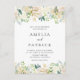 Convide convidados para o seu casamento com este elegante cartão postal de casamento floral. Apresenta ilustrações em aquarela de rosas brancos e marfim e peônias com acentos de folha de ouro verde e falsa. Este cartão postal de convite para casamentos de peônias de aquarelas é perfeito para primavera e casamentos no inverno.