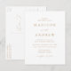 Cartão postal minimalista e moderno de convite para casamento com os detalhes do seu casamento em letras douradas com sotaques de escrita de caligrafia. O fundo branco pode ser alterado para uma cor de sua escolha. Personalize a parte de trás do cartão postal do convite de casamento com seu endereço de volta, site do casamento, imagens, etc. Projetado para coordenar com a nossa coleção de casamento do Modern Elegance.