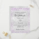 Um convite de casamento moderno e elegante. Fundo metálico de aspecto fino prateado, decorado com poeira de cinza púrpura e poeira brilhante e uma borboleta como marca de água. Personalize e adicione seus nomes e detalhes do casamento. Letras pretas coloridas.