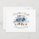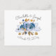 Cartão Postal De Convite Casamento Floral Dourado Azul