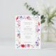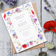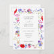 Bonito convite de trabalho de arte de natação de flor silvestre, ideal para um casamento de primavera ou verão com um roteiro personalizado de tipografia de cinzas elegantes, com modelos fáceis de usar. A mão original colorida pintou a arte floral em azul empoeirado, azul de córnfo, rosa, burgundy, vermelho, amarelo, verde, roxo e magenta pela artista Catherine Sweetman. Inclui papoila, girassol, botão de billy, esqueça-me os nãos e flores de cosmos e flores de jardim de verão perfeitas para um casamento bíblico com tema externo.