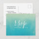 Cartão Postal De Convite Casamento na Praia com Aquarela Azul Rsvp