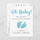 Comemore a futura mãe a ser de longa distância com um chá de fraldas virtual online. Este simples cartão-postal de convite para chá de bebê apresenta "Oh Baby!" num guião de pincel azul e azul pastel e uma coordenada aquarela azul de pés de bebês. No verso, você pode personalizar facilmente com os detalhes do chá, incluindo um link de acesso on-line, informações do registro, onde enviar cartões e presentes ou a opção de abrir on-line e enviar posteriormente, e onde obter mais informações.