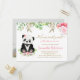 Doce fofa adorável flor floral rosa bege, flor de rosa, verde eucalipto, folhagem aquarela botânica, folhas de sage verde, folha de ouro, ursinho panda bebê, mal podemos esperar! É uma menina! convite de chá de bebê. Você pode personalizar este convite moderno e elegante com seu próprio texto e foto. Por favor, substitua a foto da amostra pela sua. Foto de amostra cortesia de https://pixabay.com/es/users/regina_zulauf-2147792/