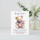 Cartão Postal De Convite Chá de fraldas Azul Vermelho Branco Patriótico Urs