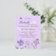 Um fundo colorido violeta e lavanda. Decorados com uma borboleta grande, abelhas e flores silvestres pintadas em violeta e rosa. Personalize e adicione um nome e detalhes da parte.