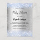 Para um convite elegante e chá de fraldas, celebrando um menino. Um fundo de olhar mal prateado. Decorado com chuva de confete azul claro, aspersor. Personalize e adicione um nome e detalhes. Script de estilo com letra moderna
