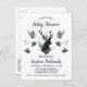 Cartão Postal De Convite Chá de fraldas Rústico de Cabeça de Veado Azul Flo