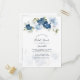 Cartão Postal De Convite Chá de panela de Script Azul Floral Moderno