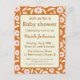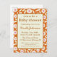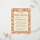Este é um convite personalizado de chuva de bebê retrô com flores de margarida brancas em fundo laranja. É um convite perfeito para festas de chuva de bebê temáticas retrô e groovy. Ele contém todos os detalhes necessários para a sua festa de chuva de bebê.