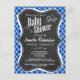 Você vai adorar este design de quadro-negro bonito, elegante e vintage com o design de padrão de Quatrefoil Azul Cobalto! Convidamo-lo para nossa loja, Chá de fraldas Boutique, para ver este design de quadro negro legal em muitos mais produtos personalizáveis excelentes, incluindo os convites para Bebê e presentes para bebês e meninas! Obrigado!