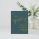 Código QR de Script Dourado Moderno Verde Tudo Em Um Cartão De Convite De Casamento Minimalista. Celebre o seu dia especial com esta elegante e bela carta de convite para casamento para embelezar a sua ocasião especial. Todos os textos estão pré-organizados para que você personalize fácil e rapidamente com seus próprios detalhes. Se você precisar de mais itens de personalização ou de correspondência, envie um e-mail para alldaybreakfastzazzle@gmail.com - gostaríamos de ajudar.