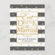 Coma, Beba e Case citação design, com letras douradas, confetes. Apropriado para anúncios de Save the Date.