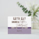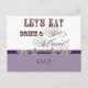 Fontes elegantes e divertidas anunciam a mensagem, "Vamos come, bebe e se casa!" em um cartão-postal de Madrinha de casamento fantástico. Em uma paleta de cores clara, nítida, lavanda, púrpura de ameixa, castanha de chocolate e branca, é o melhor da safra com uma torção moderna. Personalize facilmente as informações de rsvp no lado inverso.