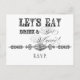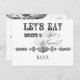Fontes elegantes e divertidas anunciam a mensagem, "Vamos come, bebe e se casa!" em um cartão-postal de Madrinha de casamento fantástico. Em uma paleta de cores clara, nítida, preta e branca, é o melhor de vintage com um toque moderno. Personalize facilmente as informações de rsvp no lado inverso.