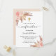 Um fundo branco na frente. Decorados com flores em ouro rosa, grama dos pampas e uma cruz dourada. Personalize e adicione um nome e detalhes. Verso: cor de fundo rosa dourada, design de cartão postal. Dica: Se você não quiser que pareça um cartão postal, clique em personalizar, vá para o verso e remova o divisor e o carimbo postal.
