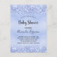 Para um chá de fraldas, comemorando um menino. Um fundo de gradiente azul claro. Decorado com confete. Modelos para o nome da mãe e detalhes da festa. O nome e o texto: Chá de fraldas são escritos com um script de estilo com letra manual. Fundo: fundo metálico azul falsa, design postal. Dica: Se você não quiser que pareça um cartão postal, clique em personalizar, vá para o verso e remova o divisor e o carimbo de posto.