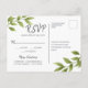 Inserto de cartão postal de confirmação de casamento com grinalda de salgueiro pintada à mão em aquarela com letras minimalistas fáceis de editar. Todo o texto pode ser editado; a escolha da fonte, layout e cores podem ser modificados de acordo com o estilo e gosto.