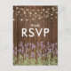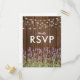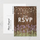Cartões de resposta de casamento com jardim no quintal apresentando um fundo de madeira de celeiro, flores de lavanda roxa de verão, luzes cintilantes e um modelo elegante de RSVP. Clique no botão “Personalize” para personalização adicional deste modelo. Você poderá modificar todo o texto, incluindo o estilo, as cores e os tamanhos. Você encontrará itens de casamento correspondentes mais abaixo na página; se, no entanto, não encontrar o que procura, por favor entre em contato comigo.