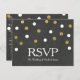 Cartão de Confirmação de Presença para Festa com Confetes Branco e Dourado em Quadro Negro. Itens correspondentes disponíveis.