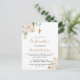 Um fundo branco decorado com um verde de eucalipto, um pedreiro branco, folhas de ouro. Personalize e um nome e detalhes da cerimônia. Letras pretas e ouros coloridas.