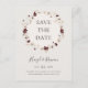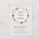 Este convite postal de data de casamento em cartão bege com flores silvestres em cobre burgundy | é perfeito para o seu casamento clássico rústico boho com tons de ferrugem, branco e marsala. O design apresenta uma grinalda ou buquê boêmio de flores silvestres modernas em aquarela roxa, vermelha, cinza e rosa beije, juntamente com folhagens em laranja queimado e dourado. Papoulas e cevada são apresentadas no design. O design é ideal para um casamento simples e minimalista de outono ou verão de outono, ou primavera em um jardim campestre. Por favor, encontre outros artigos de papelaria de casamento correspondentes ou coordenados no restante desta coleção.