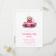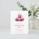Cartão Postal De Convite Cute Sloth in a Pink Convertible