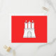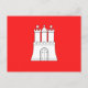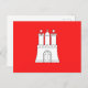 Cartão postal com bandeira de Hamburgo, bandeira vermelha com ilustração de um castelo branco com três torres