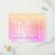 Este design de convite moderno apresenta uma textura holográfica brilhante e colorida falsa e letra elegante de caligrafia.