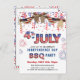 Cartão-postal do CHURRASCO Azul Azul Vermelho Azul no Dia da Independência Festivo Fogos de Artifício Vermelho. Celebrar o "Dia da Independência" com este cartão de convite de festas "4 de JULHO" na moda e patriótico. Todos os textos estão pré-organizados para que você personalize fácil e rapidamente com seus próprios detalhes.
