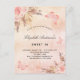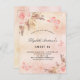 Um fundo rosa dourado, rosado, rosado e roxo, com aspecto metálico. Decorados com ouro rosa e flores, rosas, erva-pampas e borboletas cor-de-rosa. Personalize e adicione um nome e detalhes da parte. Dica: Se você não quiser que pareça um cartão postal, clique em personalizar, vá para o verso e remova o divisor e o carimbo de posto.