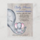 Convide amigos e família para comemorar seu chá de fraldas com este chá de fraldas de elefante rústico e giro para um bebê. Este belo convite para chás apresenta um elefante gentil com seu bebê elefante. O bebê elefante está sentado no porta-malas da mãe elefante com orelhas rosa doces e pés cor-de-rosa. Tão fofo e tenda para um chá de fraldas de menino.