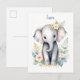 Cartão Postal De Convite Elefante Bebê Florido