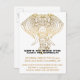 Convites de festas de aniversários de zoo, elefantes tribais, únicos, bonitos, ouro metálico falso, elefante tribal com tatuagens de padrão de hena. Lê "Le'ts Go Wild" com nome personalizado e ano de aniversário em caracteres negros e brancos. Abaixo estão os detalhes personalizados do zoológico, incluindo informações de RSVP no estilo de letras brancas correspondentes, de cor dourada. Vazio na parte traseira para adicionar qualquer mensagem que você quiser, seja impressa ou manuscrita. Um tipo de convite zoológico para animais selvagens.