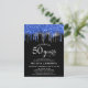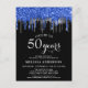 Cartão Postal De Convite Elegante Blue Silver Black Glitter Drip 50 Birthda