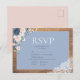 Cartão Postal De Convite Elegante Dusty Blue Blush Floral Lace Casamento RS