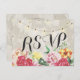 Cartão Postal De Convite Elegante Floral String Lights Linen Wedding RSVP