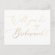 Cartão Postal De Convite Elegante Proposta de Dama de Honra em Ouro e Calig