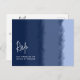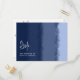 Um cartão-postal de resposta de casamento elegante com escolha de refeição apresentando um padrão expressivo de aquarela de listras desenhadas à mão em uma tonalidade profunda de azul oceano. Uma escolha encantadora com tema náutico para um casamento na praia ou recepção de praia.