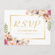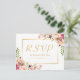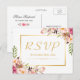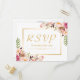 Elegante Rosa Floral Dourado Quadro Casamento RSVP Cartão Postal.
