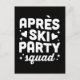 Equipe de festa após esqui garotas depois de esqui coquetel e bebidas tema de viagem de esporte de montanha de férias de inverno engraçado presente de estética preto e branco amigos cartão de convite de impressão pequena postcard convite.