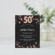 Cartão Postal De Convite Estrelas de ouro rosa preto de 50 anos