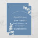 Um fundo azul empoeirado, decorado com caules de eucalipto, galhos. Personalize e adicione um nome e detalhes da parte.