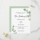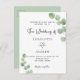 Um fundo branco decorado com cinzas de eucalipto verde. Personalize e seu nome e detalhes da cerimônia. Letras pretas coloridas. Fundo verde. Adicione sua própria url ao seu site de casamento para RSVP on-line ou para obter mais detalhes.