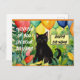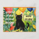 Cartão Postal De Convite Feliz aniversário :gato preto abrindo uma festa de